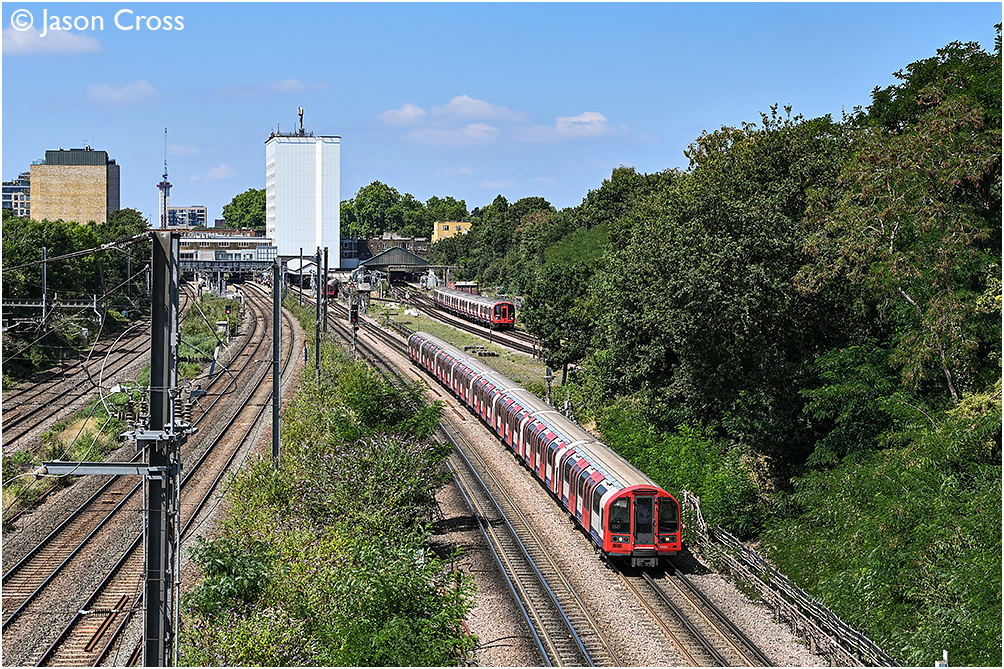 departs from Ealing Broadway with a Central Line service for Leytonstone; an