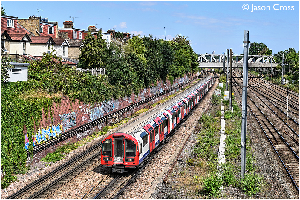 A Leytonstone to Ealing Broadway Central Line service approaches its destination led by 91143. Date: 13 July 2025 Manipulation Notes: None