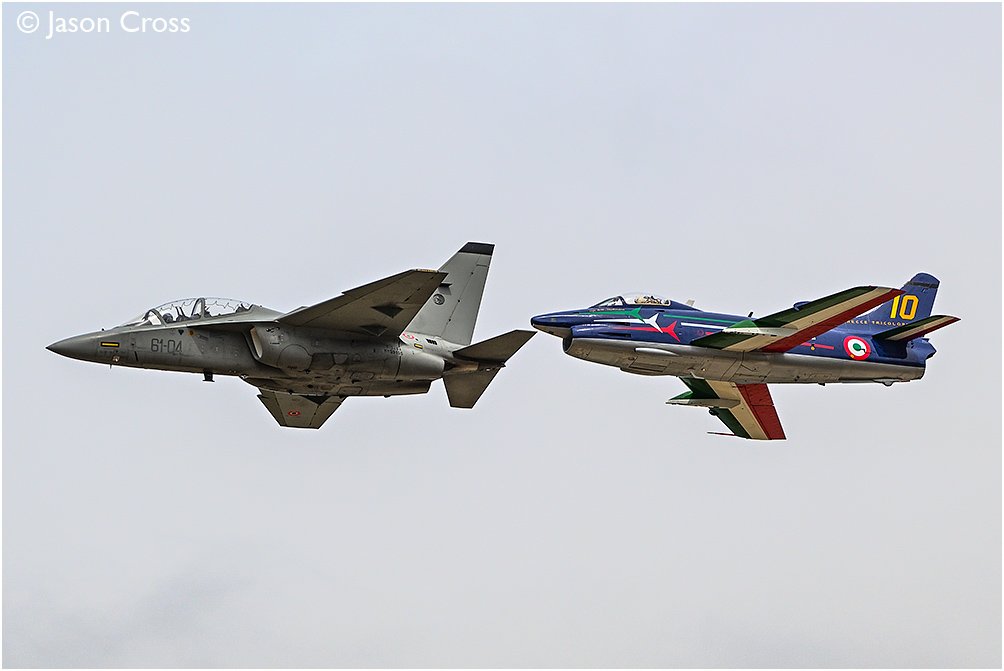 Ex-Italian Air Force Fiat G91 MM6305 and Italian Air Force Alenia Aermacchi T-346A MM55155. Royal International Air Tattoo 2025, RAF Fairford. Date: 20 July 2025 Manipulation Notes: None