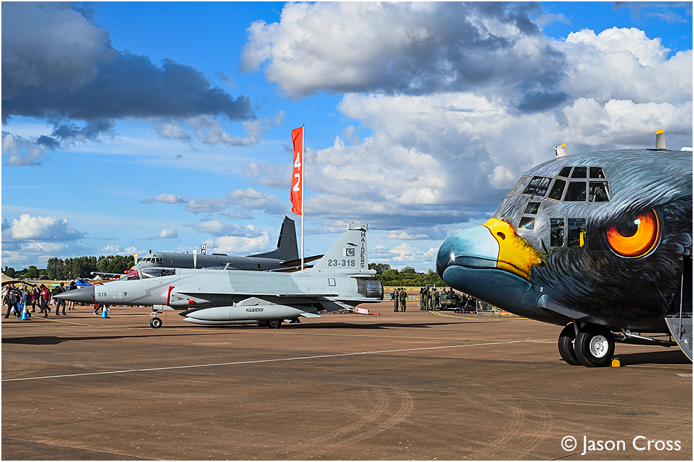 Pakistan Air Force Lockheed C130H Hercules 4479 and Pakistan Air Force Chengdu JF-17 Thunder 23-319. Royal International Air Tattoo 2025, RAF Fairford. Date: 20 July 2025 Manipulation Notes: None