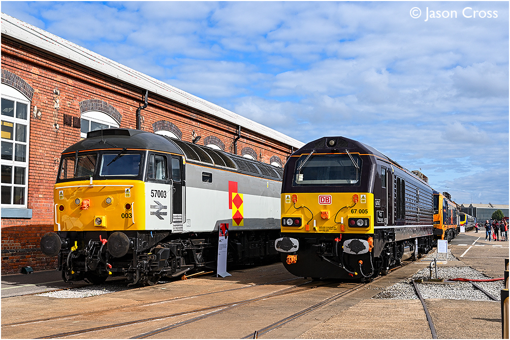 57003 and 67005 'King's Messenger'. 'The Greatest Gathering' Rail 200 Event at Alstom's Derby Litchurch Lane Works. Date: 2 August 2025 Manipulation Notes: None