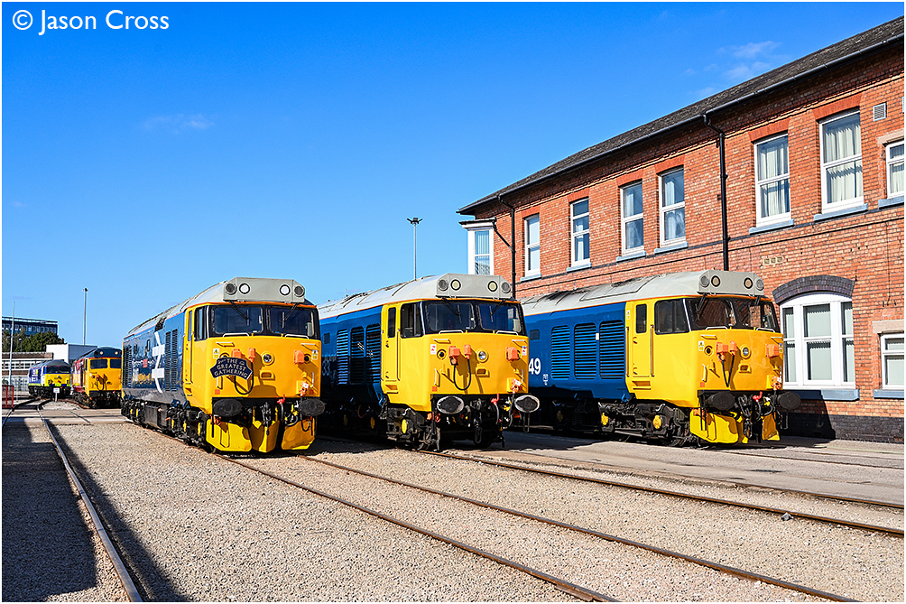 Probably the best photographable line up at the event; 50007 'Hercules', 50033 'Glorious' and 50049 'Defiance'. 'The Greatest Gathering' Rail 200 Event at Alstom's Derby Litchurch Lane Works. Date: 2 August 2025 Manipulation Notes: None