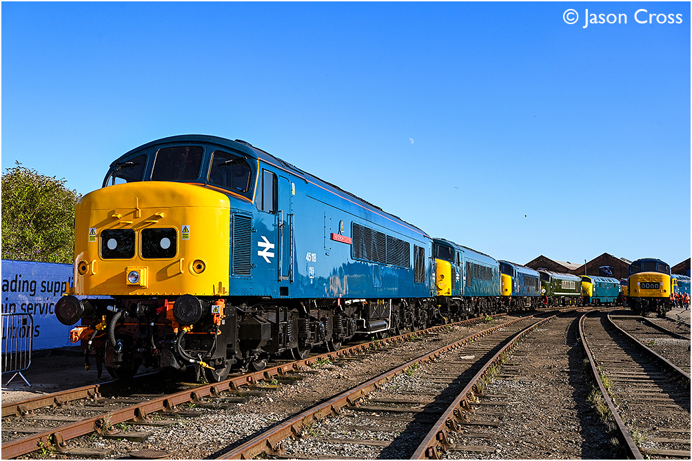 45118 'The Royal Artilleryman', 44004 'Great Gable', 45108, D8 'Penyghent', D821 'Greyhound' and 46045. 'The Greatest Gathering' Rail 200 Event at Alstom's Derby Litchurch Lane Works. Date: 2 August 2025 Manipulation Notes: None
