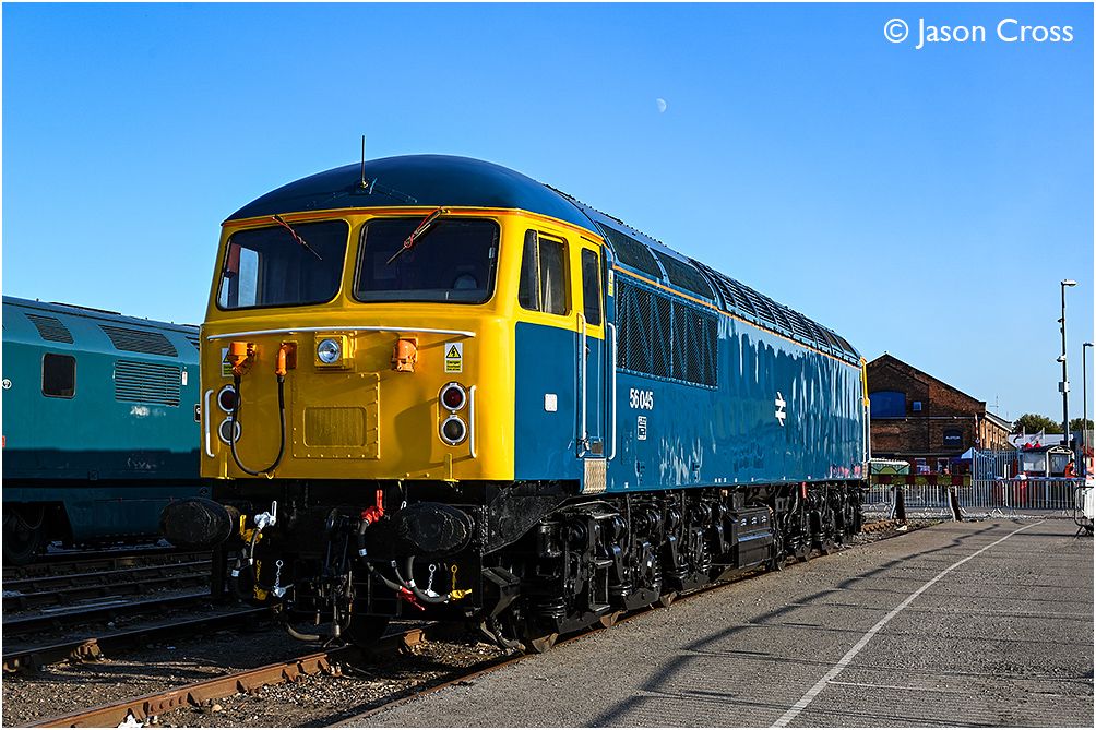 BR blue 56045 (formerly 56301). 'The Greatest Gathering' Rail 200 Event at Alstom's Derby Litchurch Lane Works. Date: 2 August 2025 Manipulation Notes: None