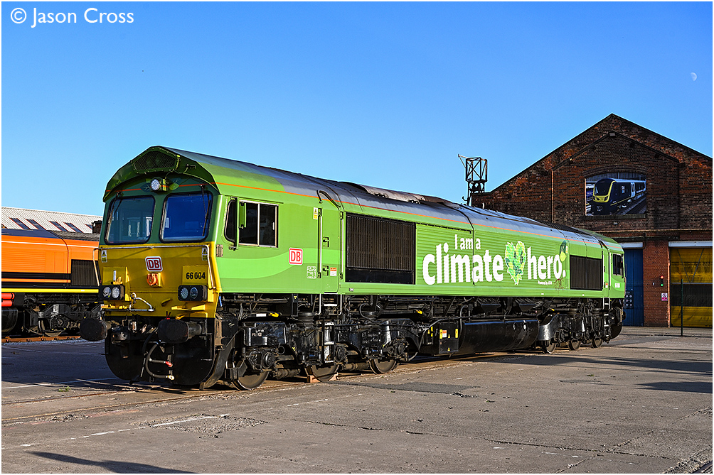 DB Cargo's 'Climate Hero' 66004. 'The Greatest Gathering' Rail 200 Event at Alstom's Derby Litchurch Lane Works. Date: 2 August 2025 Manipulation Notes: None