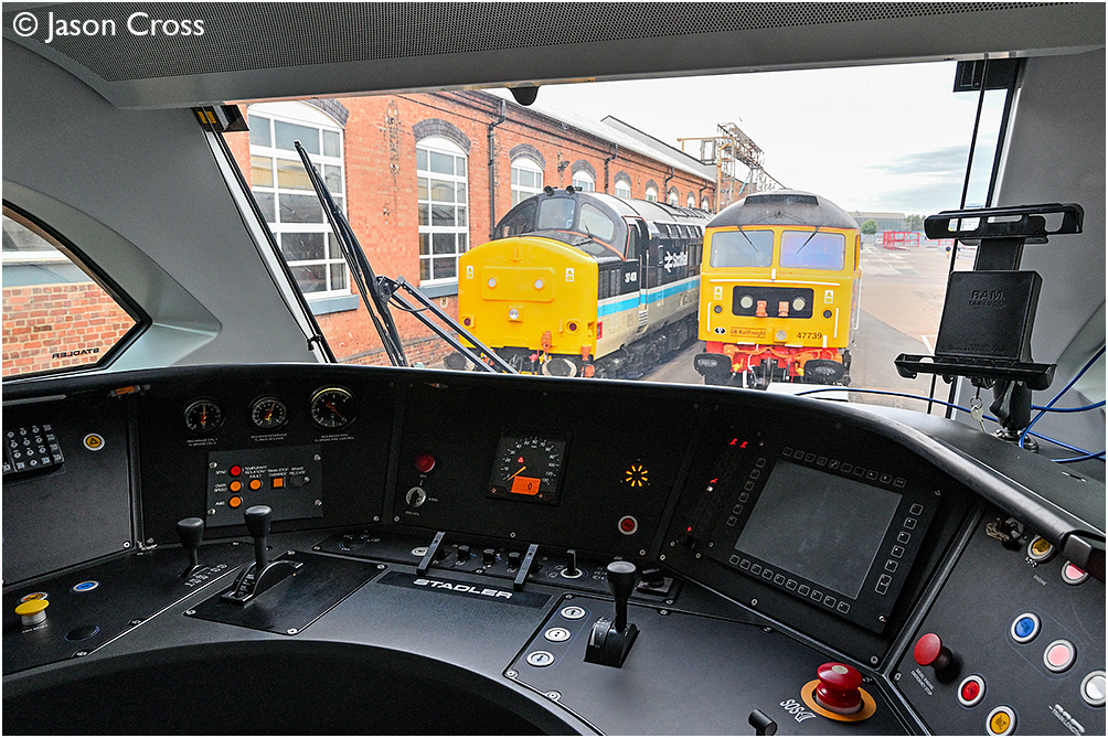 47739 and 37401 viewed from inside 99001. 'The Greatest Gathering' Rail 200 Event at Alstom's Derby Litchurch Lane Works. Date: 3 August 2025 Manipulation Notes: None