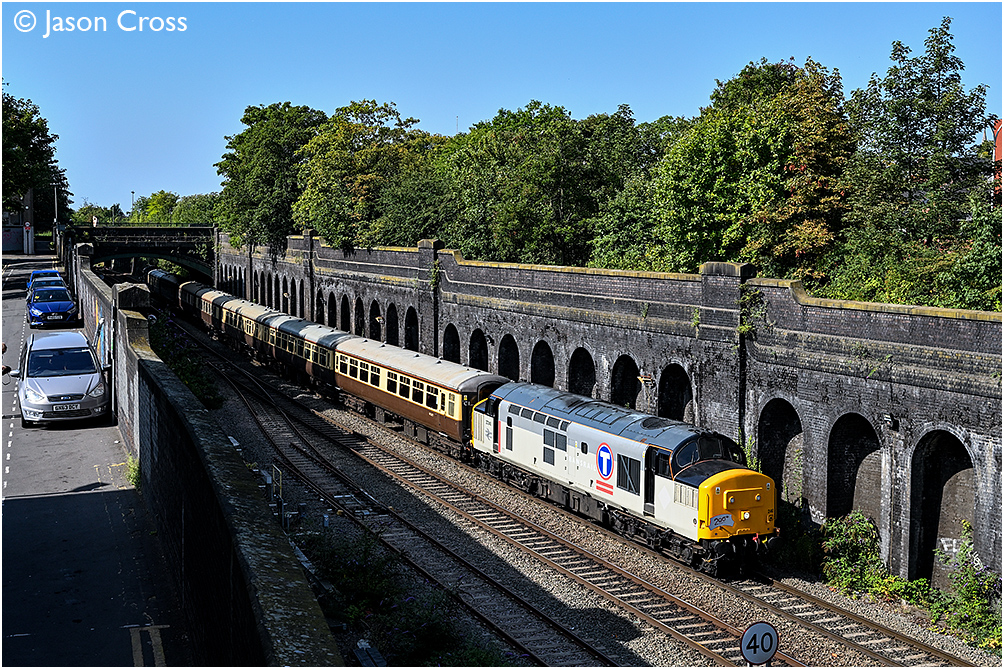 37240 approaches Leicester with 5Z73 0848 Tyseley Steam Trust to Leicester empty stock. Date: 10 August 2025 Manipulation Notes: None Camera mounted on a tall pole and remotely fired