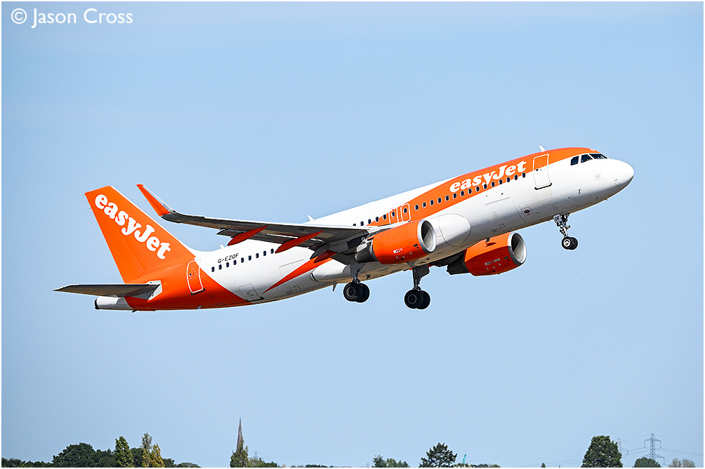 Easyjet Airbus A320 G-EZOF takes off from Birmingham Airport with a flight for Edinburgh. Date: 25 August 2025 Manipulation Notes: None