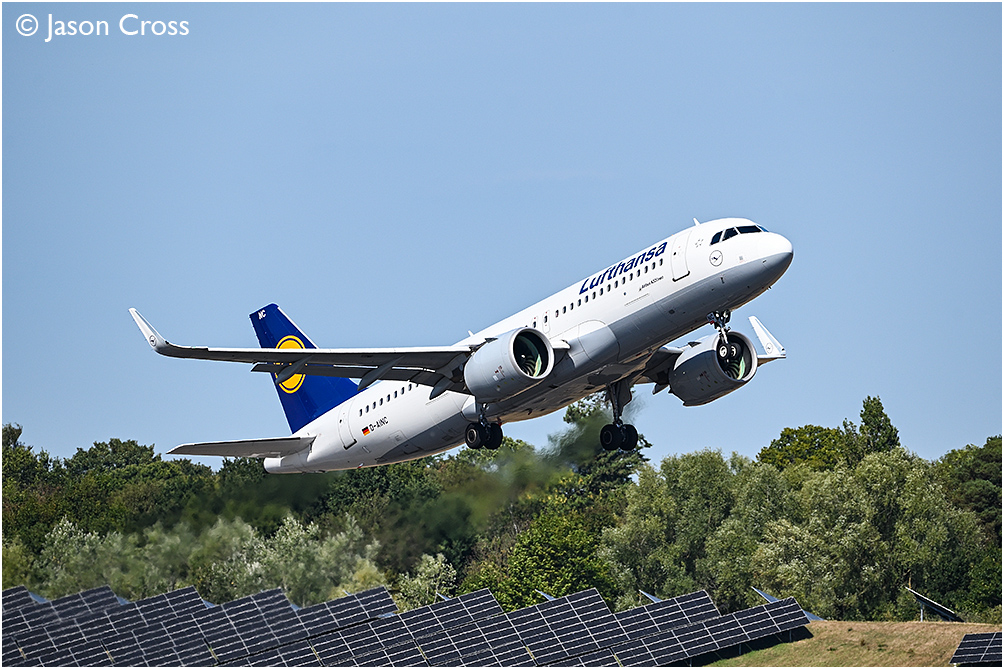 Lufthansa Airbus A320 D-AINC departing from Birmingham for Frankfurt. Date: 25 August 2025 Manipulation Notes: None