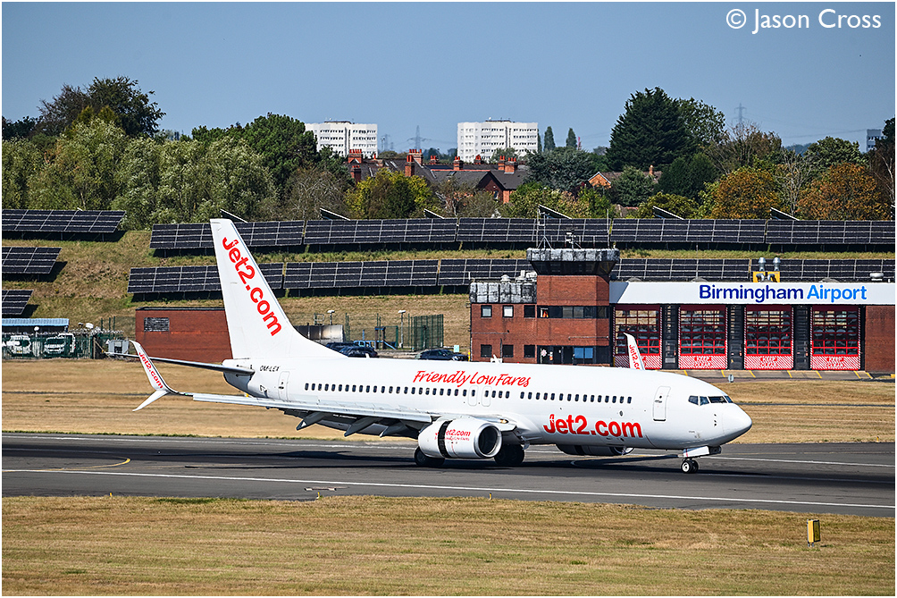 Jet2 Boeing 737 OM-LEX arrives at Birmingham Airport from Rome. Date: 25 August 2025 Manipulation Notes: None