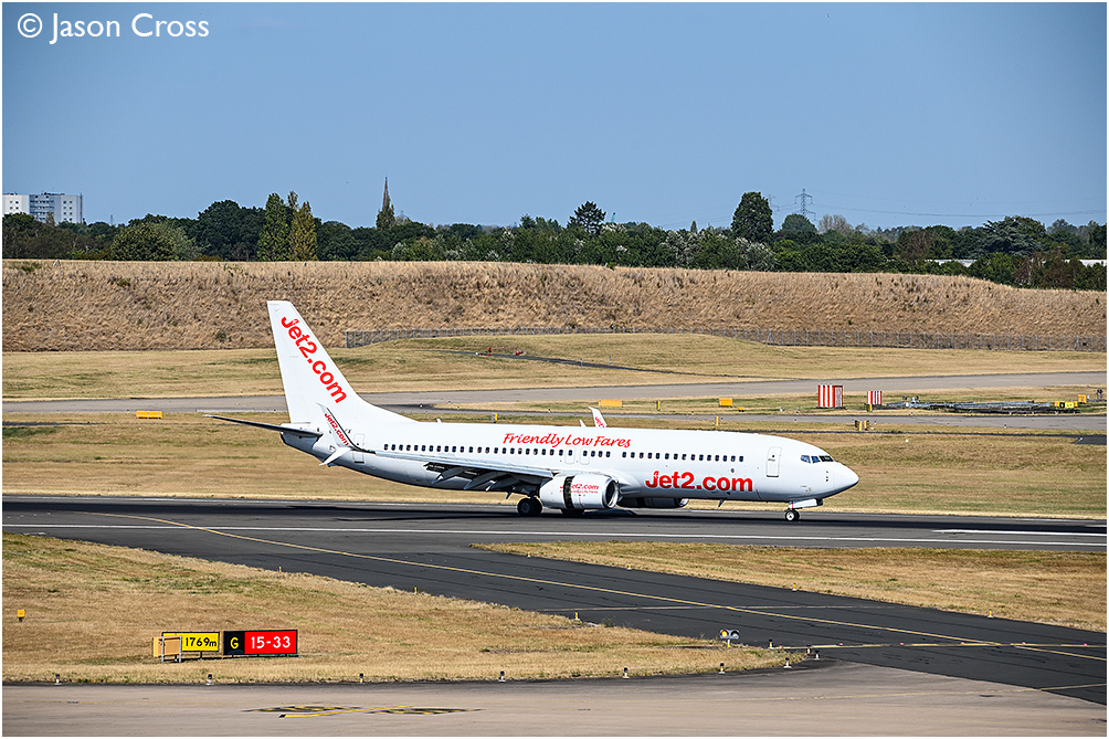 Jet2 Boeing 737 OM-LEX arrives at Birmingham Airport from Rome. Date: 25 August 2025 Manipulation Notes: None