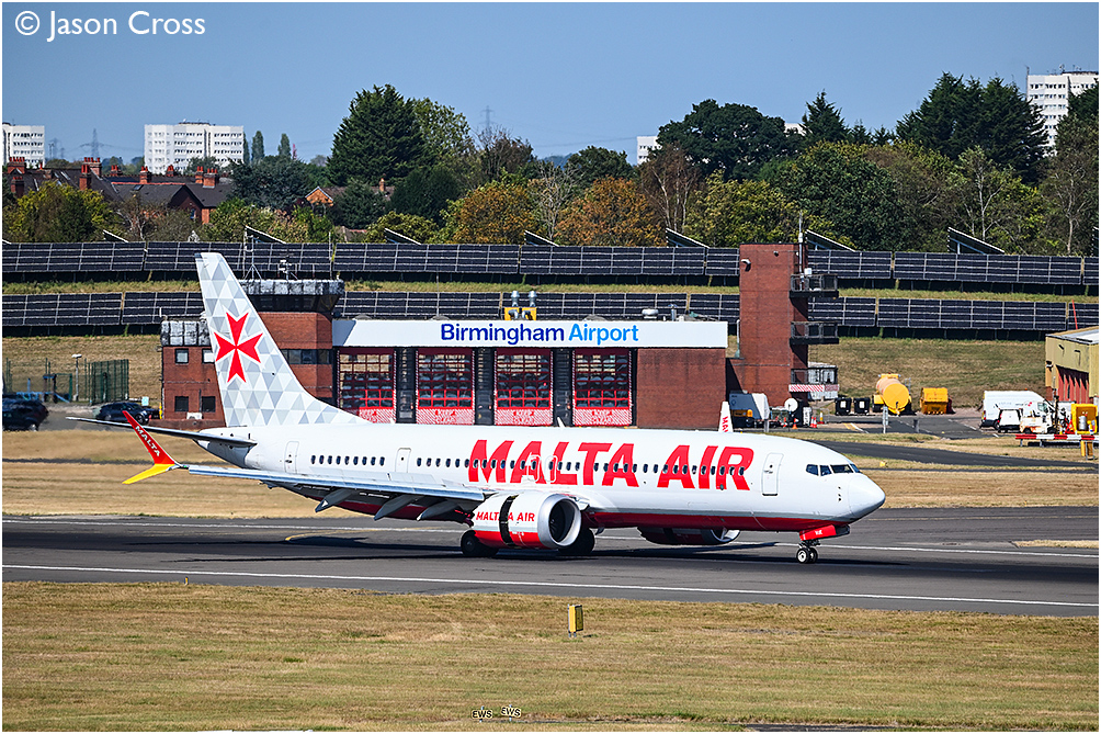 Malta Air Boeing 737 9H-VUE shortly after touching down at Birmingham Airport from Palma de Mallorca. Date: 25 August 2025 Manipulation Notes: None