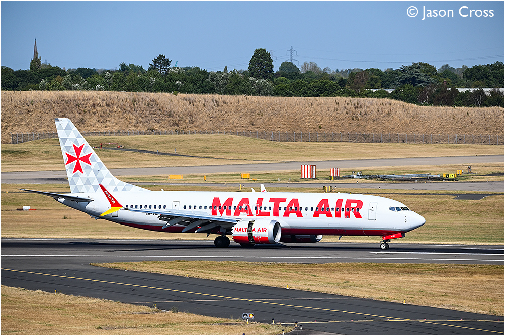 Malta Air Boeing 737 9H-VUE shortly after touching down at Birmingham Airport from Palma de Mallorca. Date: 25 August 2025 Manipulation Notes: None
