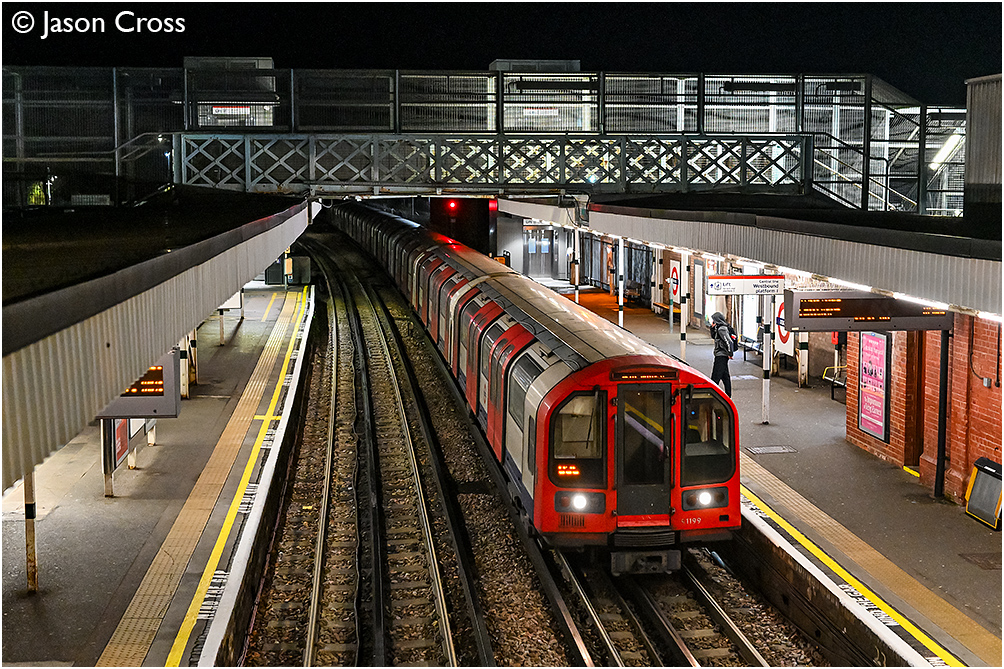 91199 leads an Epping to West Ruislip Central Line service into Debden. Date: 23 November 2025 Manipulation Notes: None
