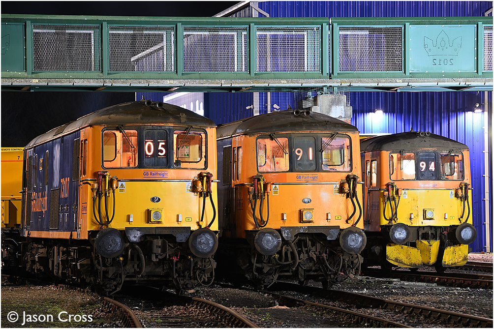 73107 'Tracy', 73136 and 73213 'Rhodalyn', Tonbridge West Yard. Northern Diesel Photo Charters photo shoot. Date: 13 December 2025 Manipulation Notes: None