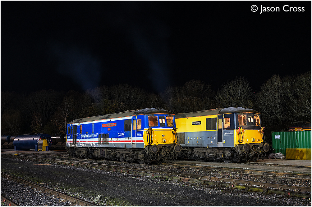 73128 'Kent & East Sussex Railway' and 73119 'Paul Taylor' at Tonbridge West Yard.