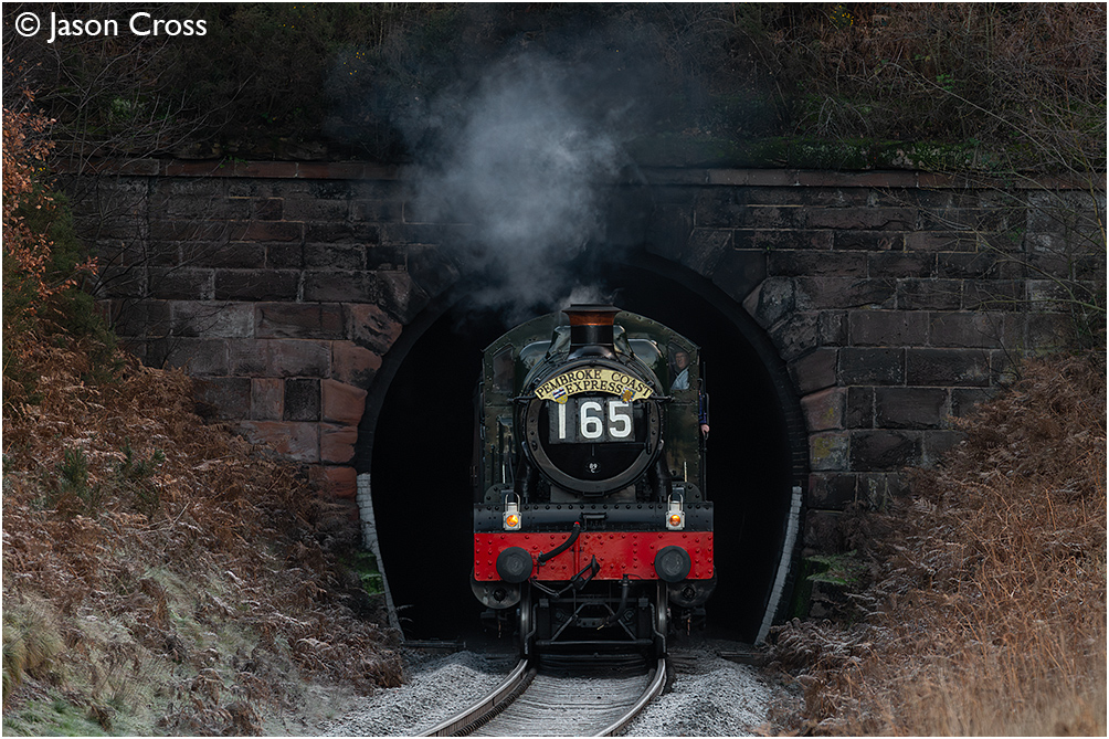 7802 'Bradley Manor' emerges from Bewdley Tunnel with the 0900 Kidderminster to Bridgnorth. Severn Valley Railway Winter Steam Gala. Date: 3 January 2026 Manipulation Notes: None