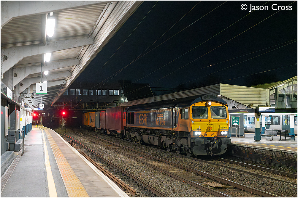 66766 'Gail Richardson' passes through Northampton with the 4M17 1436 London Gateway to Hams Hall container train. Date: 4 February 2026 Manipulation Notes: None