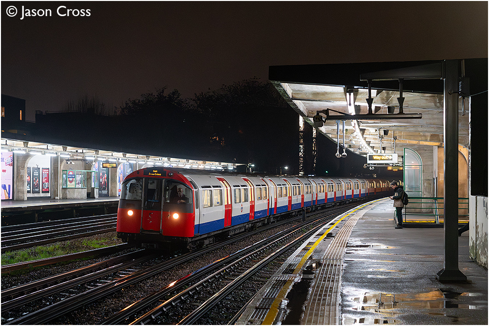 A Rayners Lane to Arnos Grove Piccadilly Line service passes through Chiswick Park. Date: 10 February 2026 Manipulation Notes: None