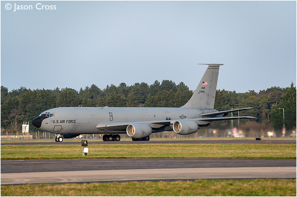 USAF Boeing KC135 Stratotanker 57-1440 departing from runway 28 at RAF Mildenhall. Date: 25 February 2026 Manipulation Notes: None