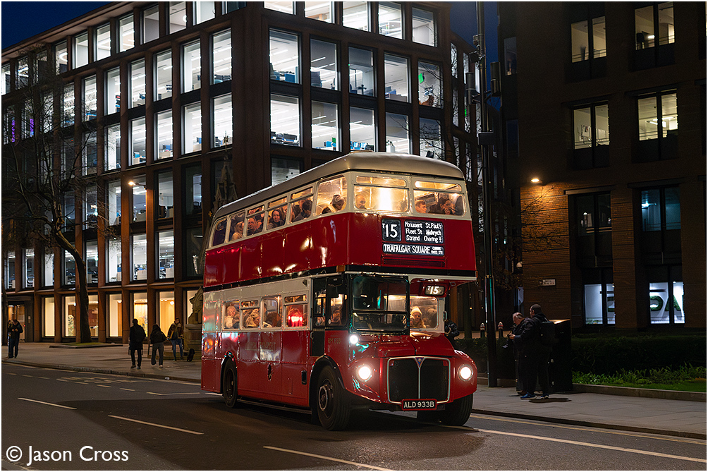 RM1933 at St Paul's with a Tower Hill to Trafalgar Square T15 service. Londoner Buses T15 route heritage weekend. Date: 28 February 2026 Manipulation Notes: None