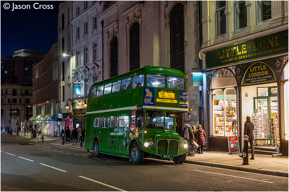 RMC1513 on Ludgate Hill with a Trafalgar Square to Tower Hill T15 service. Londoner Buses T15 route heritage weekend. Date: 28 February 2026 Manipulation Notes: None