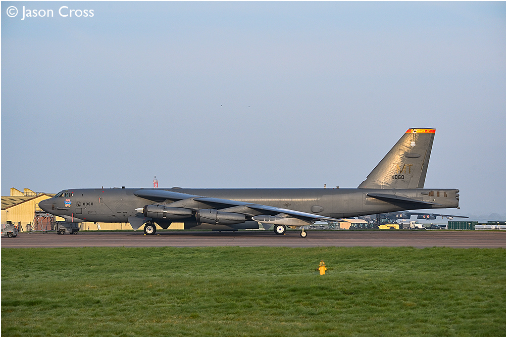USAF Boeing B-52H 60-0060 sits on the pan at RAF Fairford. The aircraft was deployed to RAF Fairford as part of the USA's Operation Epic Fury against Iran. Date: 21 March 2026 Manipulation Notes: None