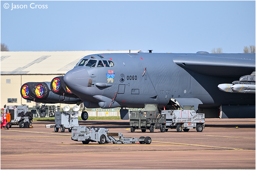 As part of the USA's Operation Epic Fury, Boeing B-52H 60-0060 is seen on the ground at RAF Fairford. Date: 21 March 2026 Manipulation Notes: None