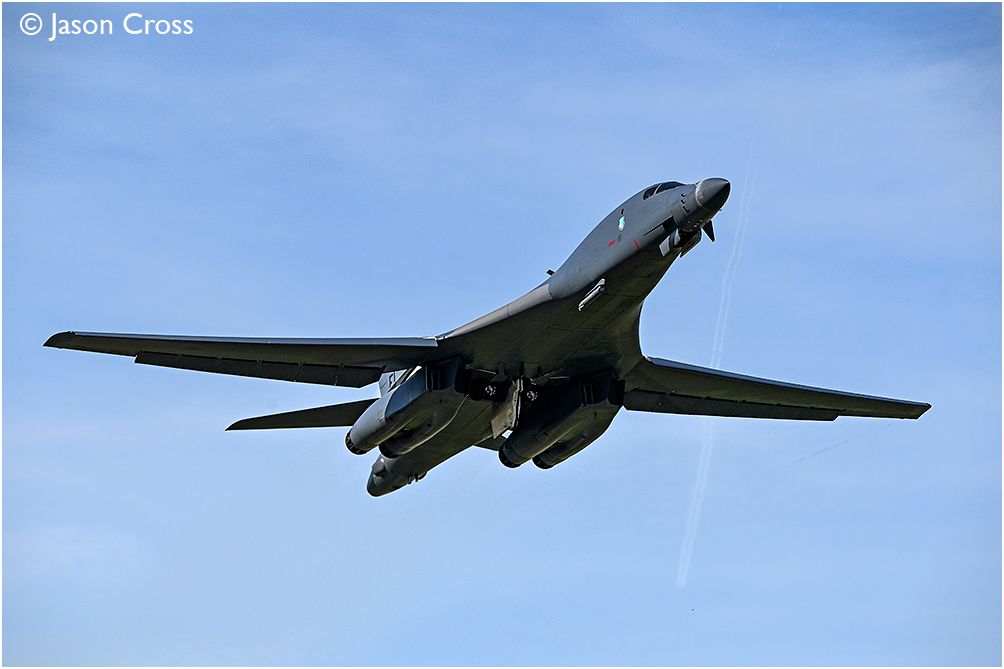 As part of the USA's Operation Epic Fury, Rockwell B-1B 86-0108 takes off from RAF Fairford's runway 09 and sets off on a bombing mission to Iran. Date: 21 March 2026 Manipulation Notes: None