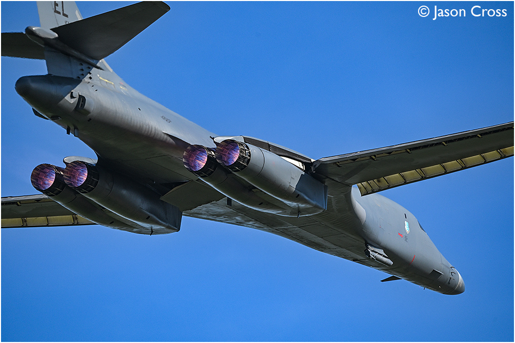 As part of the USA's Operation Epic Fury, Rockwell B-1B 86-0108 takes off from RAF Fairford's runway 09 and sets off on a bombing mission to Iran. Date: 21 March 2026 Manipulation Notes: None