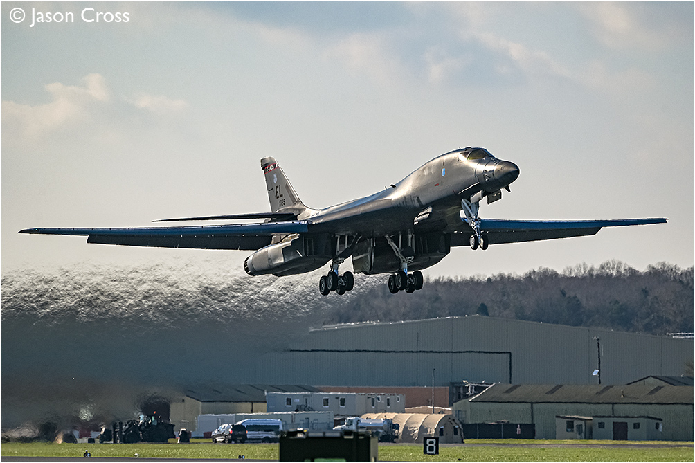 As part of the USA's Operation Epic Fury, Rockwell B-1B 86-0139 takes off from RAF Fairford's runway 09 and sets off on a bombing