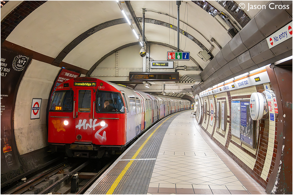 A rather scruffy looking train of 1972 Tube Stock consisting of 3562-4562-3462+3331-4331-4231-3231 arrives at Edgware Road with an Elephant & Castle to Stonebridge Park Bakerloo Line service. Date: 23 March 2026 Manipulation Notes: None