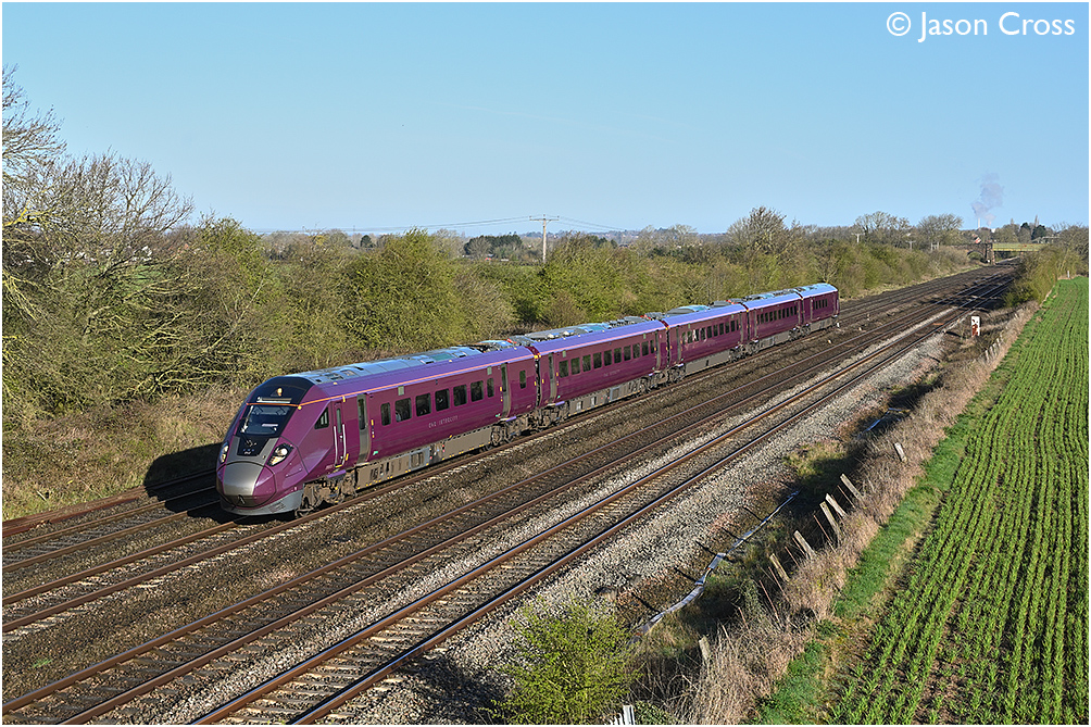 810012 races by Cossington with the 1C17 0732 Derby to London St Pancras service. This train should have started from Sheffield, but that part of its journey was cancelled. Date: 26 March 2026 Manipulation Notes: None