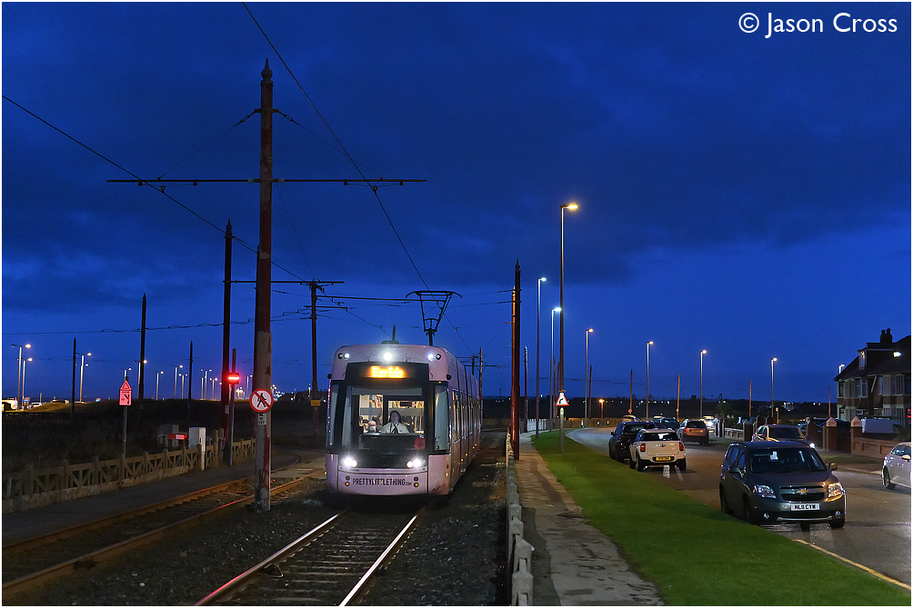 Flexity 016 approaching Little Bispham with a Fleetwood Ferry to Starr Gate service. Date: 13 November 2021 Manipulation Notes: None