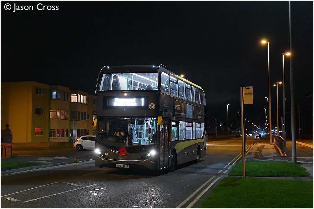 421 working a northbound number 1 service at Little Bispham. Date: 13 November 2021 Manipulation Notes: None