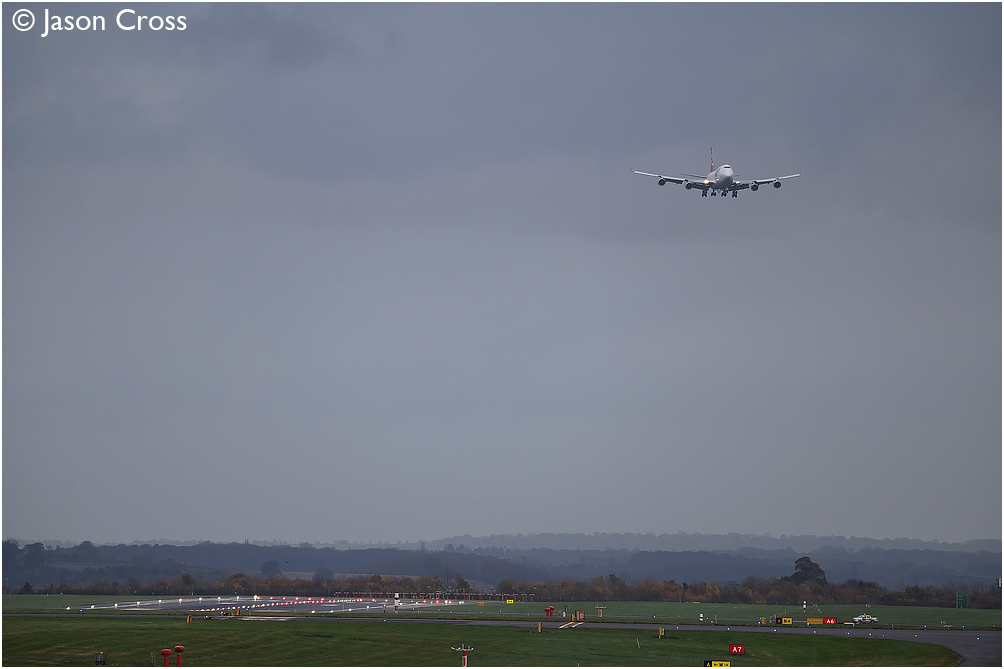 south-west, Aerotranscargo Boeing 747 ER-BAM catches a crosswind as it