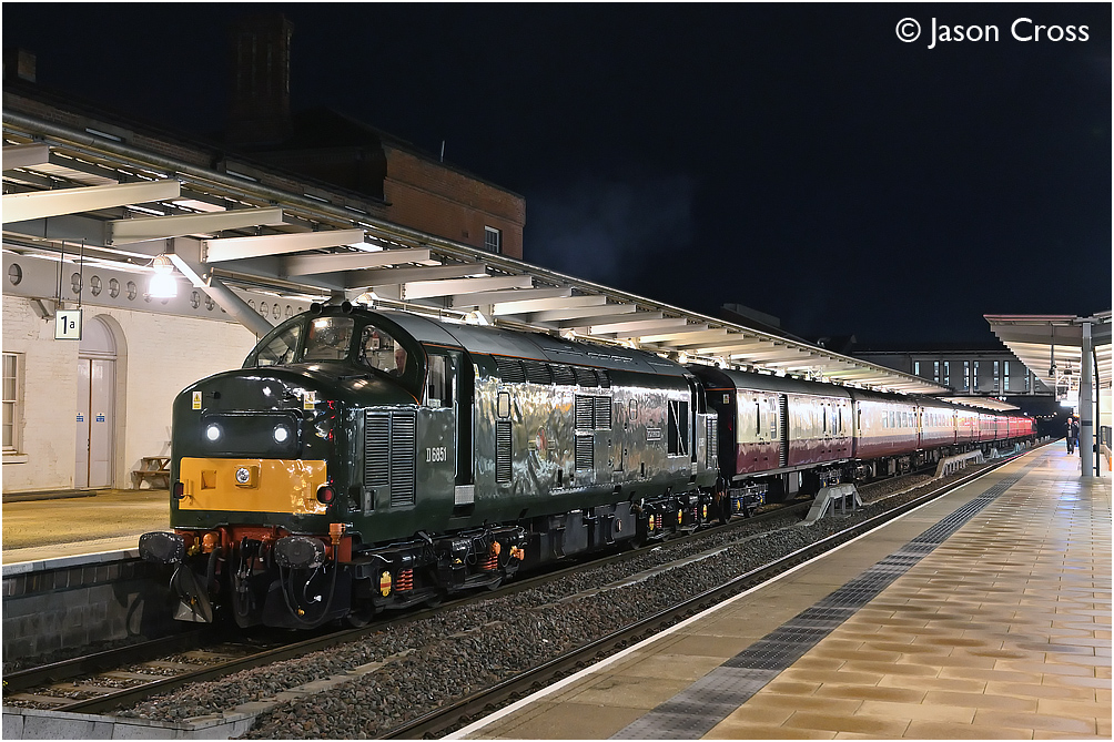 D6851 prepares to depart from Derby with a 5Z36 2040 Derby to Crewe Carriage Sidings ECS. Date: 20 November 2021 Manipulation Notes: None
