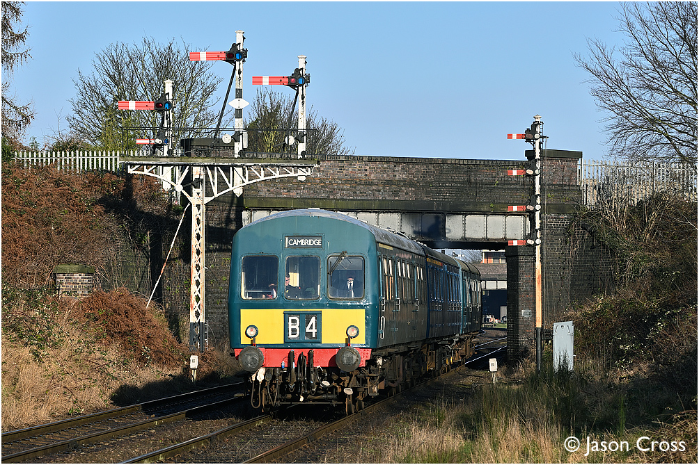 DMU 50266+59506+50203 departs from Loughborough Central and passes Beeches Road with the 1030 service to Leicester North. Date: 16 January 2022 Manipulation Notes: None