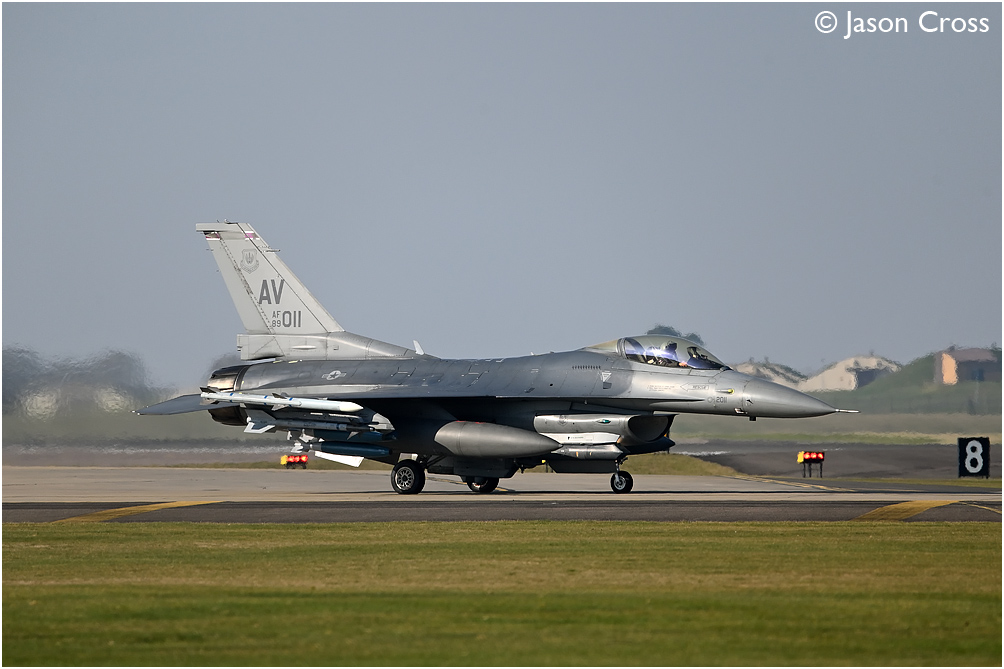 F16C 89-2011 taxies to runway 24 at RAF Lakenheath.