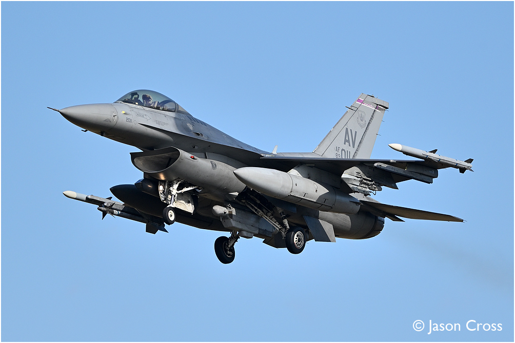 F16C 89-2011 on approach to runway 24 at RAF Lakenheath. (F16s were on a deployment to RAF Lakenheath from Aviano Air Base in Italy). Date: 11 March 2022 Manipulation Notes: None