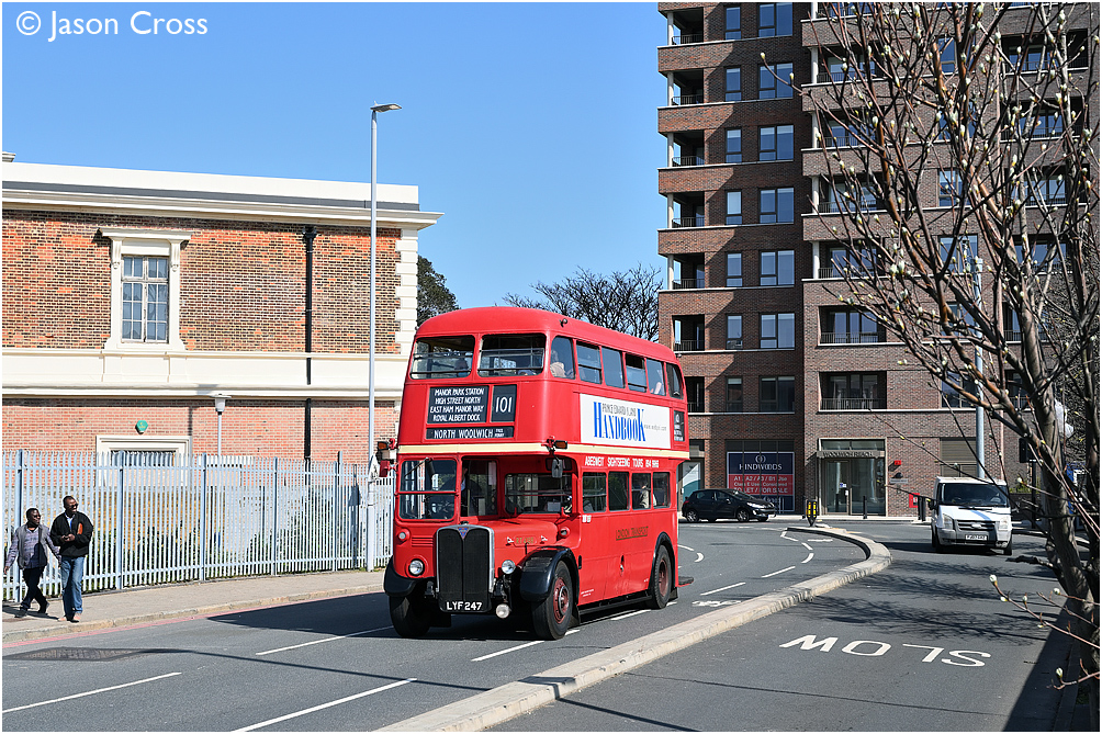 RT4188 on Pier Road, North Woolwich. Route 101 vintage bus running day (organised by the London Bus Museum). Date: 26 March 2022 Manipulation Notes: None
