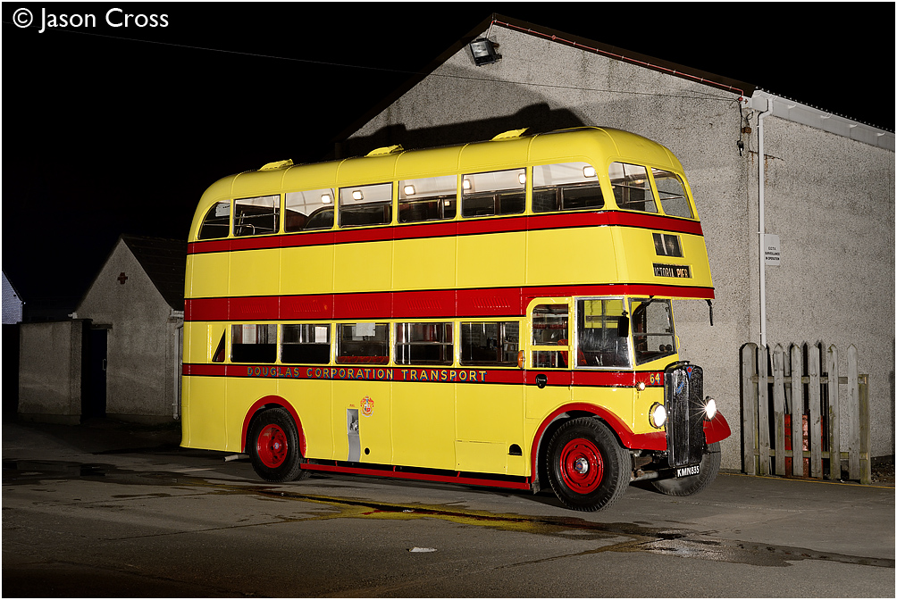 Douglas Corporation Transport number 64, an AEC Regent III, poses under floodlights at Port Erin. Date: 10 April 2013 Manipulation Notes: None