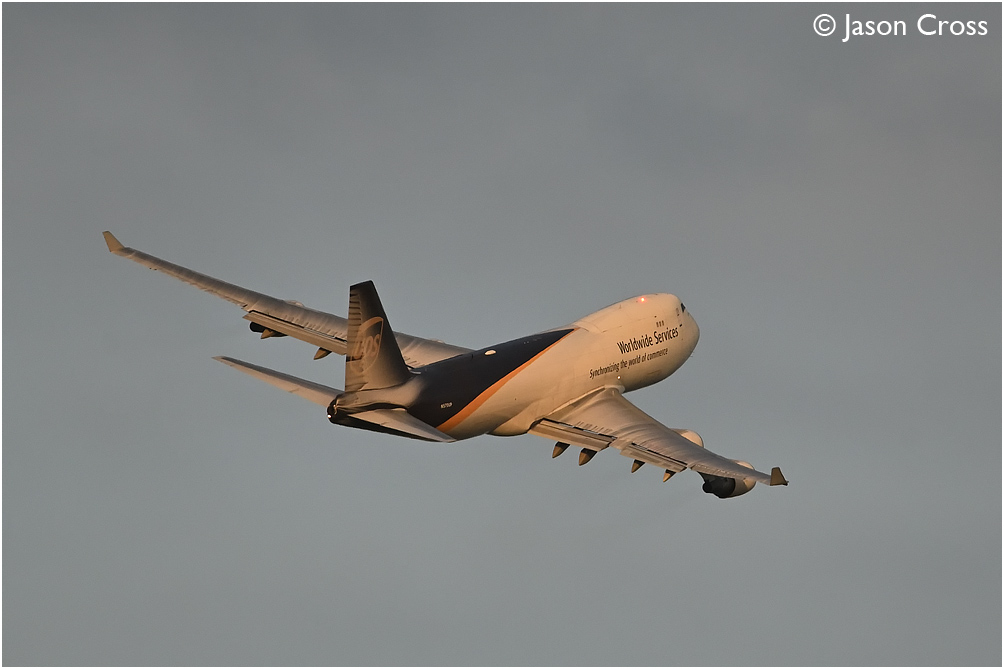 UPS Boeing 747 N570UP departing from East Midlands Airport with a cargo flight for Philadelphia. Date: 2 April 2022 Manipulation Notes: None