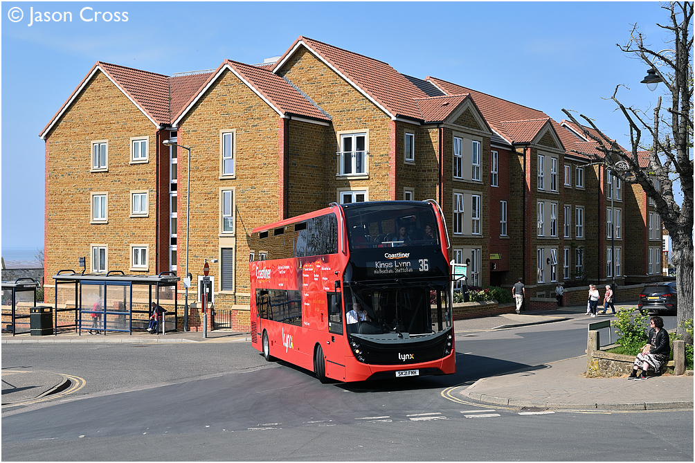 Lynx Coastliner number 62 departing from Hunstanton bus station with a 36 Wells-next-the-Sea to Kings Lynn service. Date: 16 April 2022 Manipulation Notes: None