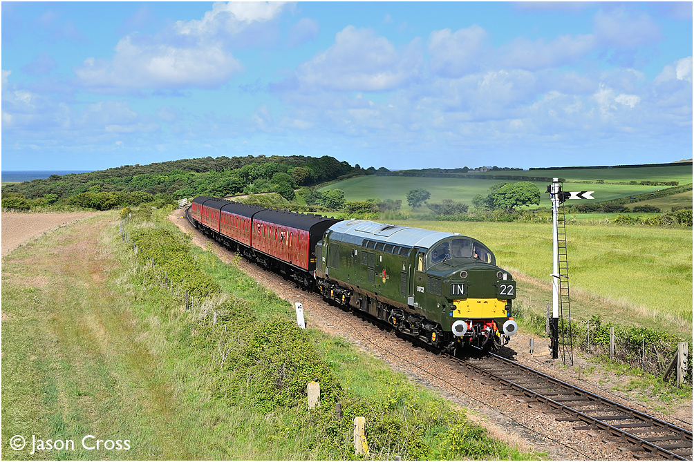 D6732 approaches Weybourne with the 1545 Sheringham to Holt service. Date: 28 May 2022 Manipulation Notes: None Camera mounted on a tall pole and remotely fired