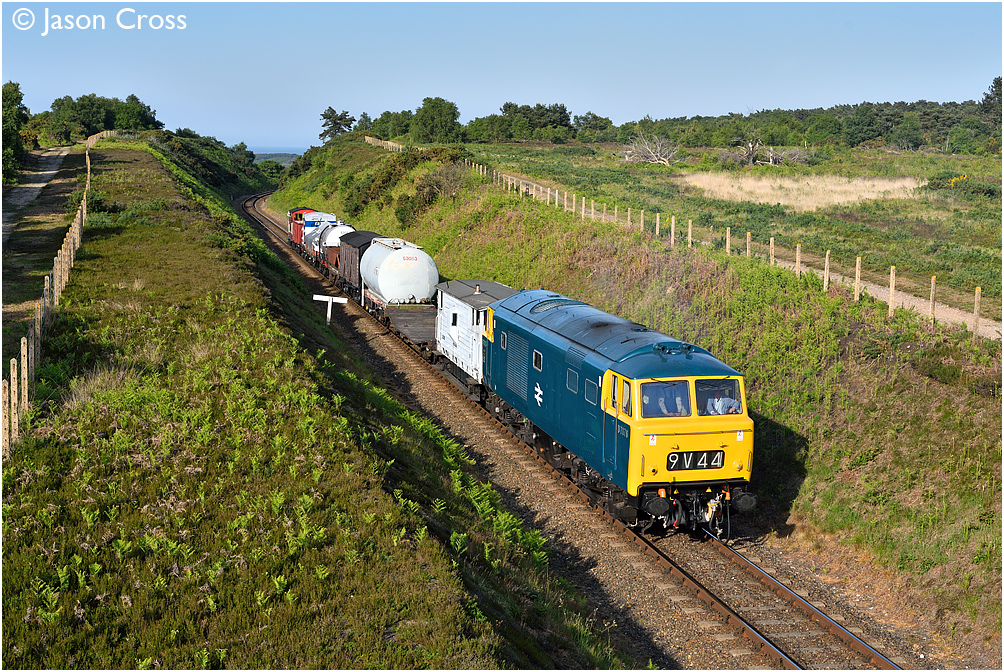 'Hymek' D7076 in Kelling Heath cutting. EMRPS photo charter. Date: 11 June 2015 Manipulation Notes: None Camera mounted on a tall pole and remotely fired