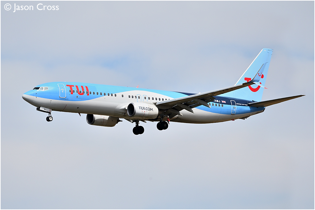 TUI Boeing 737 G-TAWJ on final approach to East Midlands Airport runway 27 with a flight from Malaga. Date: 7 August 2022 Manipulation Notes: None