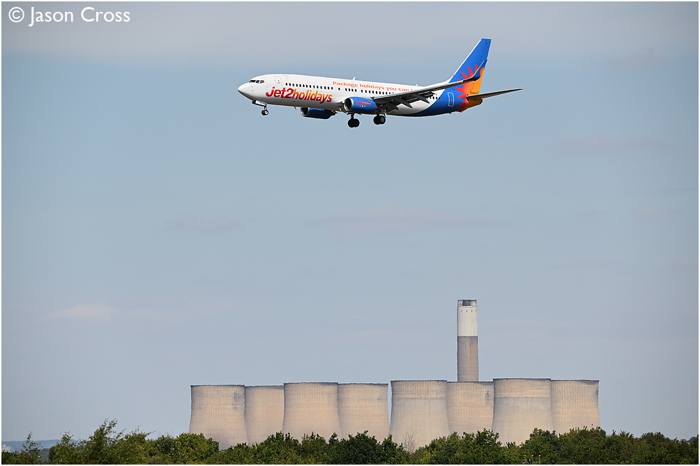 Jet 2 Boeing 737 G-DRTB on final approach to East Midlands Airport runway 27 with a flight from Malaga.