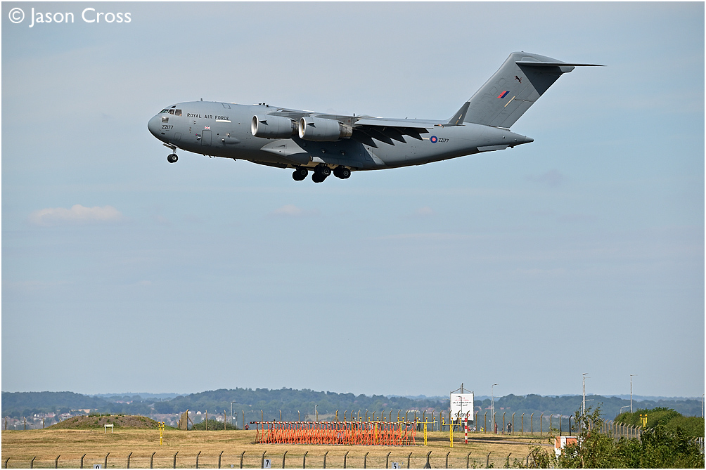 ZZ177 on final approach to East Midlands Airport runway 27 with a flight from Rzeszow.