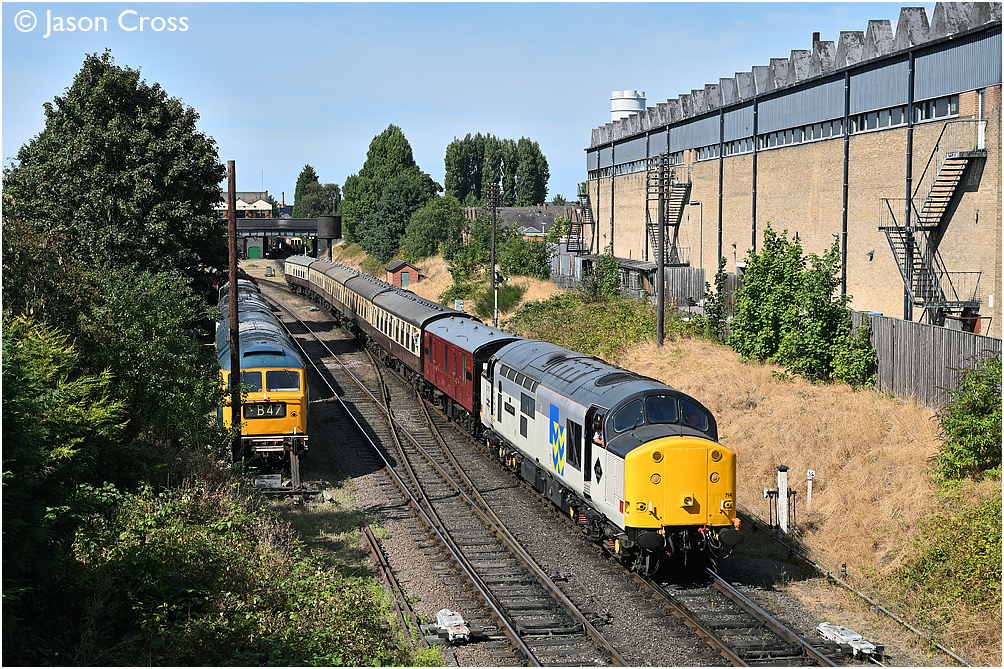 37714 departs from Loughborough Central with the 1530 for Leicester North. Date: 7 August 2022 Manipulation Notes: None